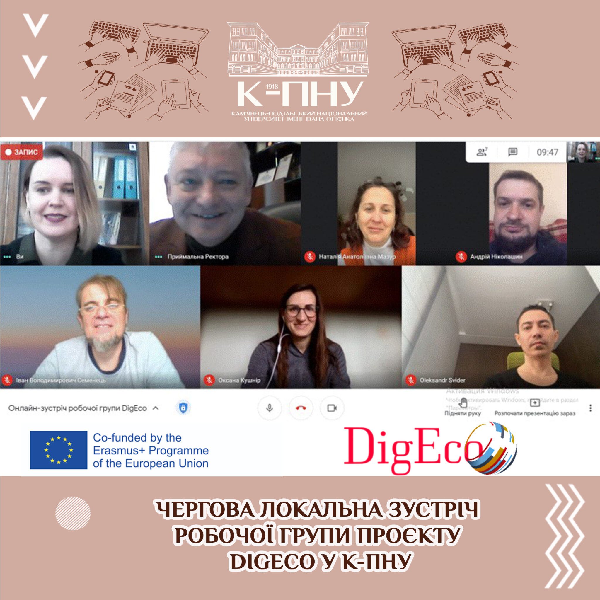 16 квітня 2021 року відбулася чергова локальна зустріч робочої групи К-ПНУ проєкту DigEco Програми ЄС Еразмус+ на якій: