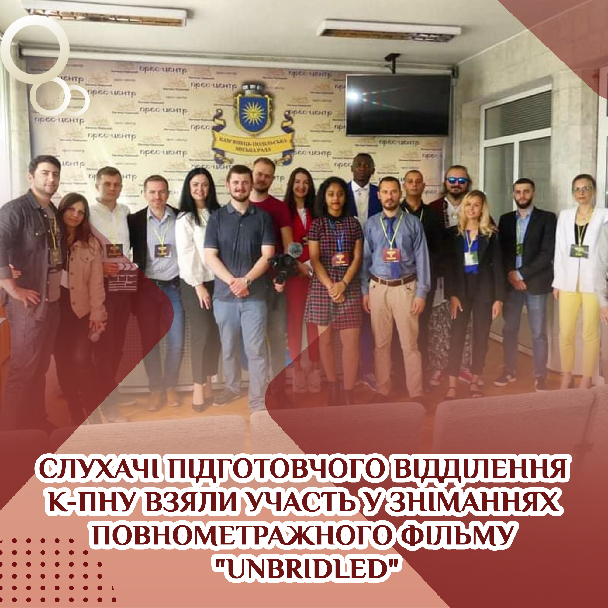 03 липня 2021 в Кам’янець-Подільській міській раді відбувся один із знімальних днів художнього повнометражного фільму “UNBRIDLED”, у якому взяли участь слухачі Підготовчого відділення для іноземних громадян та осіб без громадянства Кам’янець-Подільського національного університету імені Івана Огієнка – Теджіндер Каур, Сафдар Мухаммад, Буньо Нзепа Бертранд. Слухачі зіграли членів делегації Ради Європи, які за сюжетом прибули до Кам’янця-Подільського на форум у межах святкування Дня міста.