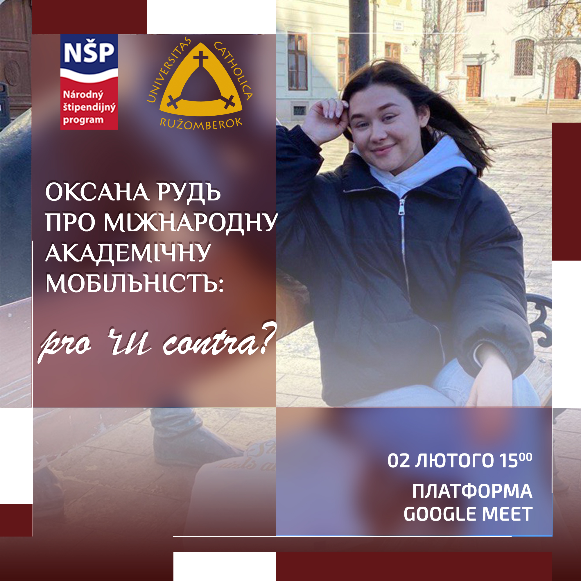 Запрошуємо на зустріч із Оксаною Рудь, студенткою спеціальності 032 (Історія та археологія), учасницею Національної стипендійної програми Словацької Республіки .