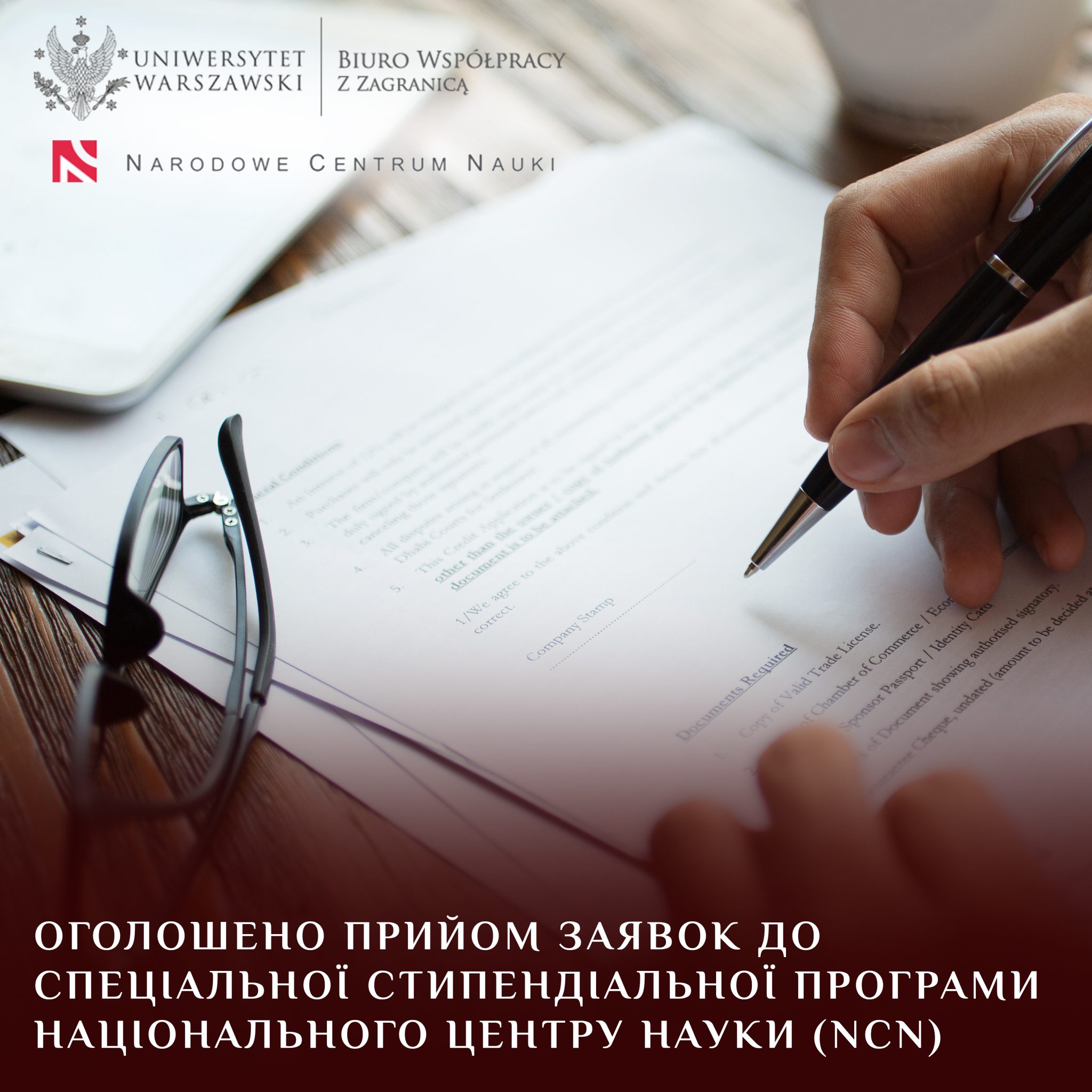 Бюро міжнародної співпраці Варшавського університету оголошує прийом заявок до Спеціальної стипендіальної програми Національного центру науки(NCN) для українських студентів і науковців, які не мають докторського ступеня.