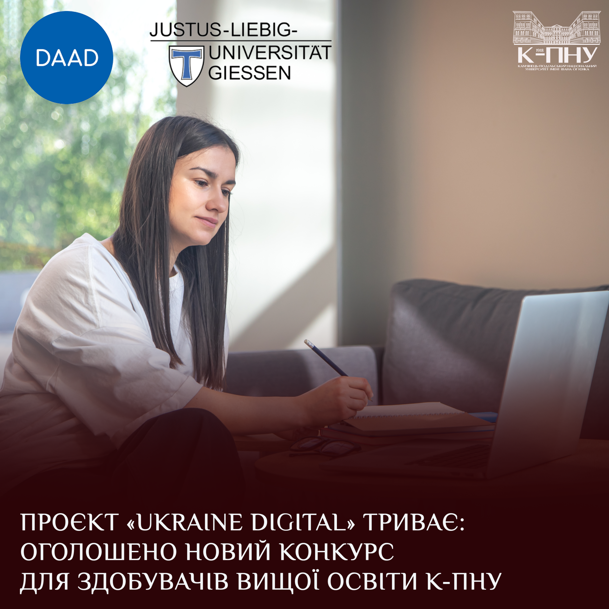 Оголошено конкурс на участь у проєкті «Ukraine digital: Studienerfolg in Krisezeiten sichern» / «Україна цифрова: забезпечення успішності в умовах кризи», який реалізується за сприяння DAAD (Німецької служби академічних обмінів) у партнерстві з Інститутом германістики Гіссенського університету імені Юстуса Лібіха (Німеччина).