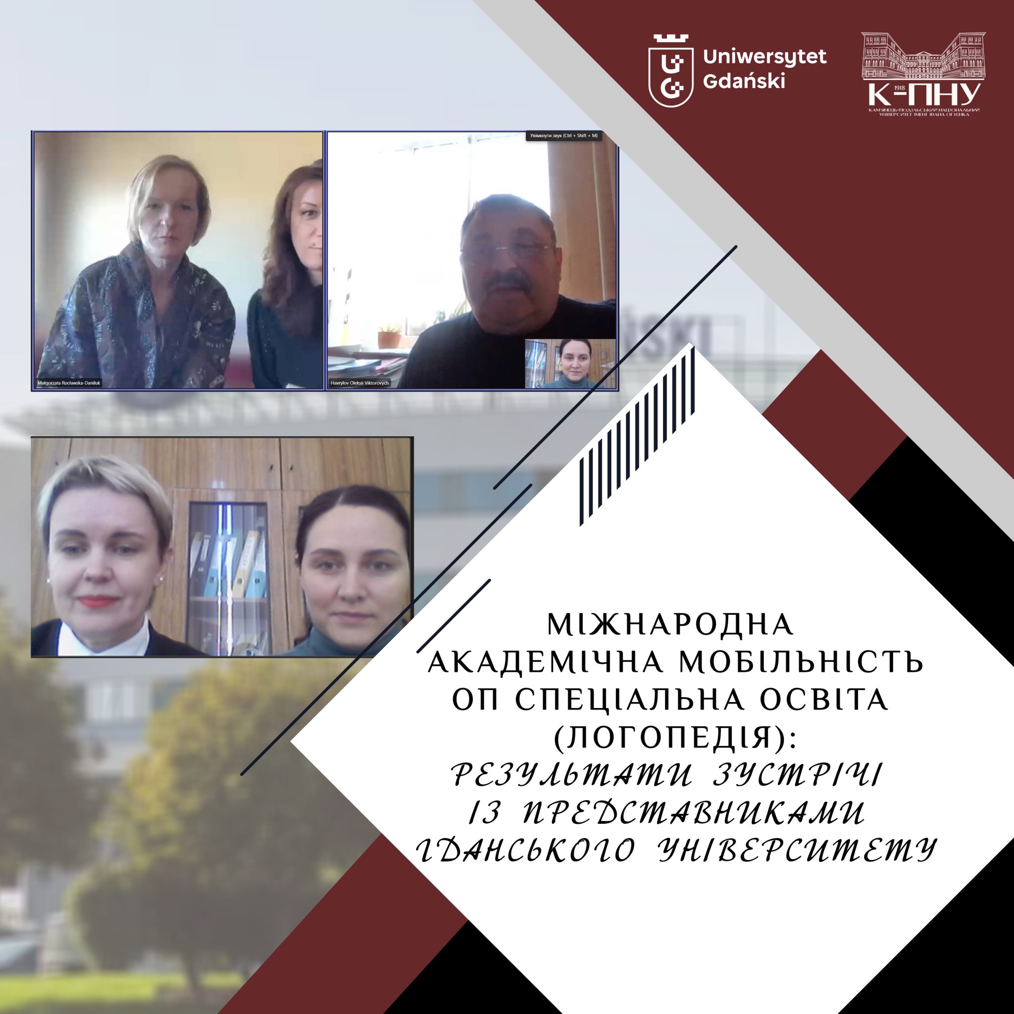 У межах підписаної міжінституційної угоди з Гданським Університетом у другому семестрі 2023-2024 н.р. студентка факультету спеціальної освіти, психології і соціальної роботи, спеціальності 016 Спеціальна освіта. Логопедія Анастасія Антонюк стане учасницею Програми ЄС Еразмус+ за напрямом КА171: міжнародна кредитна мобільність. Зауважимо, що здобувачі цієї освітньої програми були учасниками внутрішньої академічної мобільності «САМ Україні», реалізованою Британською Радою. Наразі участь здобувачки в програмі міжнародної академічної мобільності в межах Програми ЄС Еразмус+ буде першим досвідом освітньої програми.
