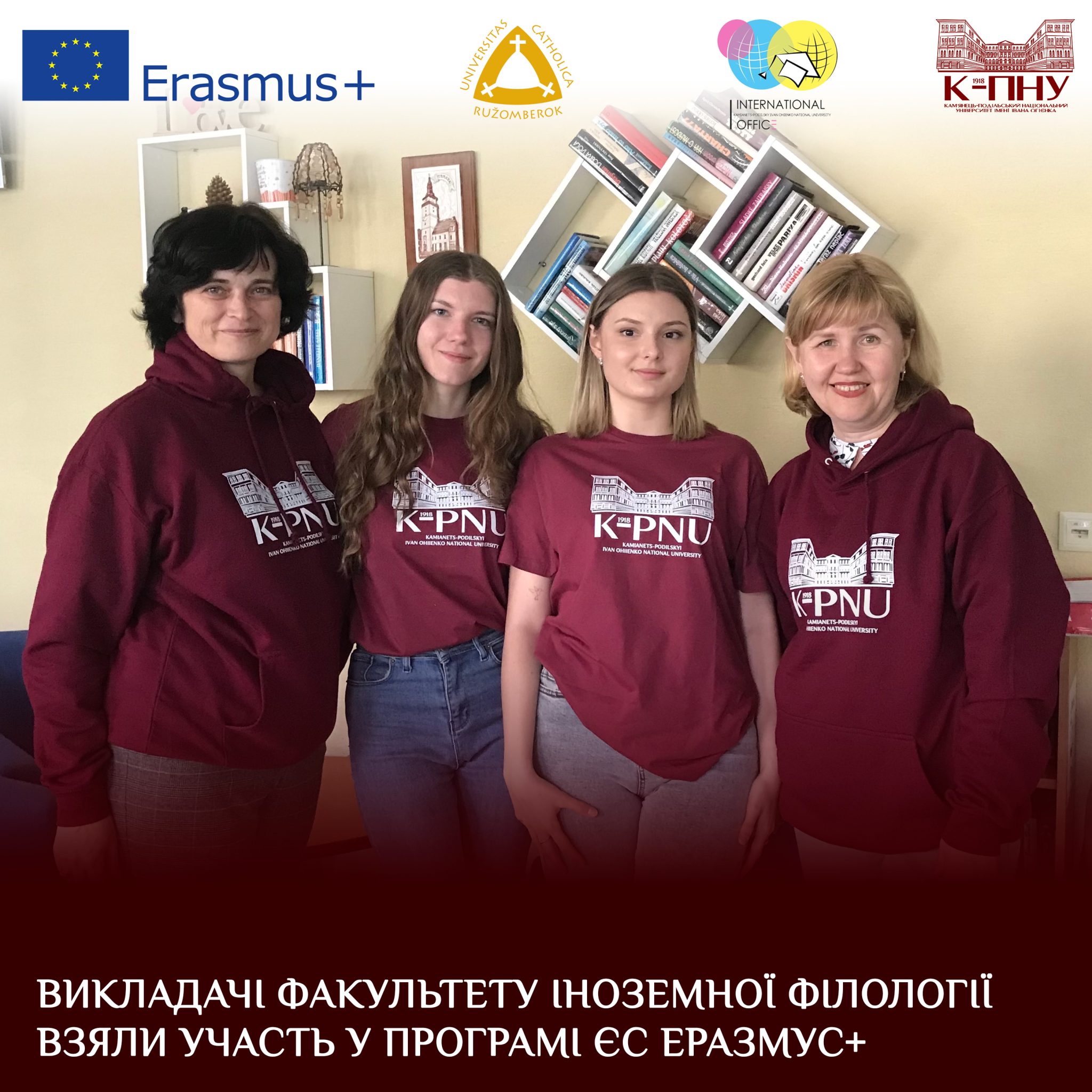 15-19 квітня 2024 року відбулася міжнародна кредитна мобільність науково-педагогічних працівників Кам’янець-Подільського національного університету імені Івана Огієнка в Католицькому університеті в Ружомберку (м. Ружомберок, Словаччина) у межах Програми ЄС Еразмус+ за напрямком КА 171. Кандидат філологічних наук, доцент, доцент кафедри англійської мови Оксана Галайбіда взяла участь у міжнародній кредитній мобільності у формі викладання; кандидат філологічних наук, доцент, доцент кафедри германських мов і зарубіжної літератури Ольга Шаповал – у формі стажування.