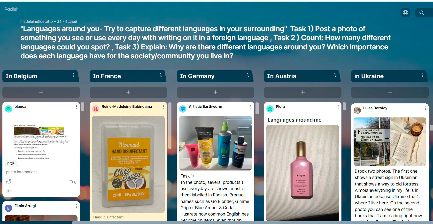 Здобувачі нашого університету спільно зі студентами країн-учасниць розмірковують над історією розвитку ЄС та їхньою роллю у формуванні європейських держав; ідентифікують себе в контексті мови, традицій, цінностей, мистецтва, символіки; вирізняють особливості понять «multilingualism», «plurilingualism», «translanguaging» тощо.