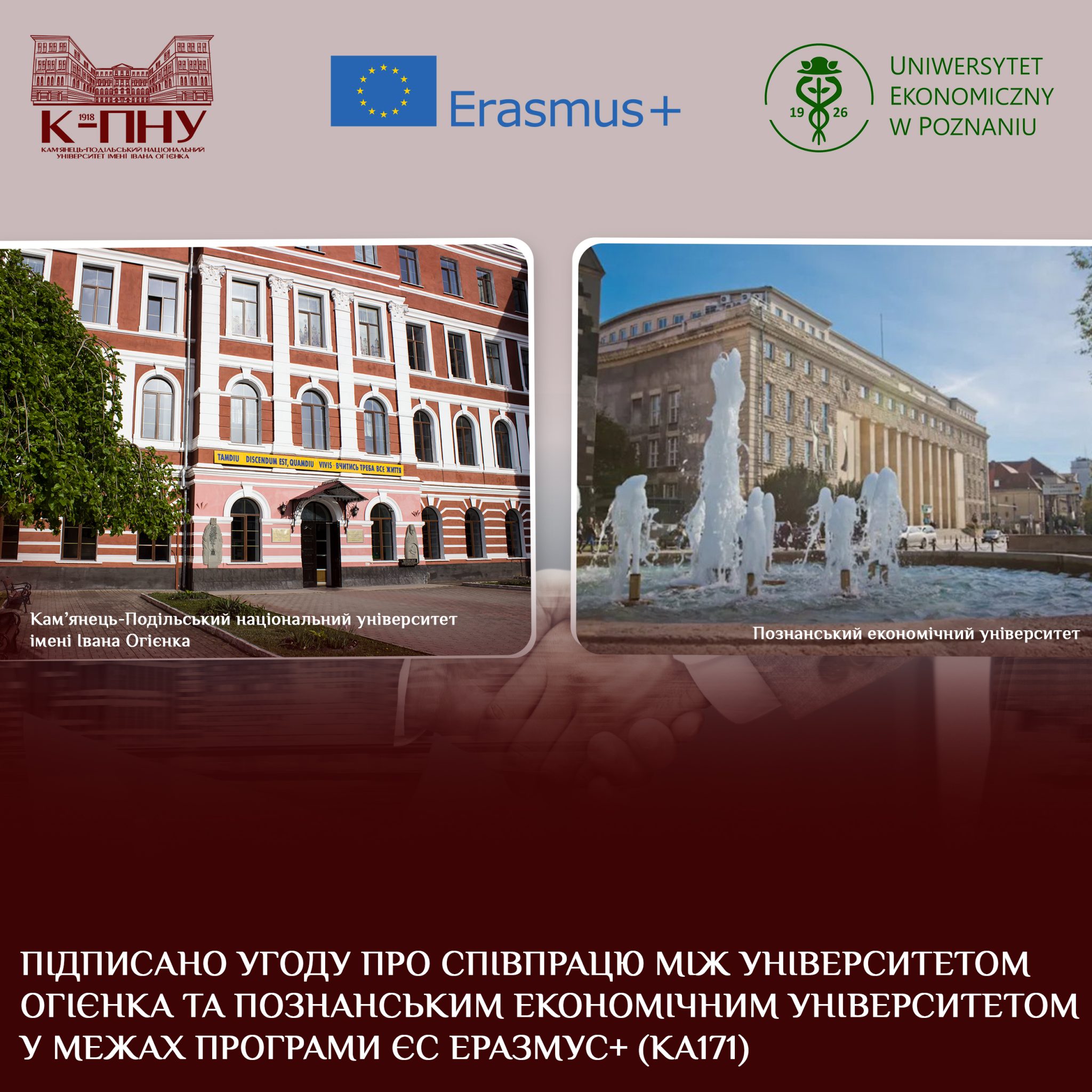 Кам’янець-Подільський національний університет імені Івана Огієнка підписав міжінституційну угоду про співпрацю з Познанським економічним університетом (Республіка Польща) в межах Програми Європейського Союзу Еразмус+ KA171.