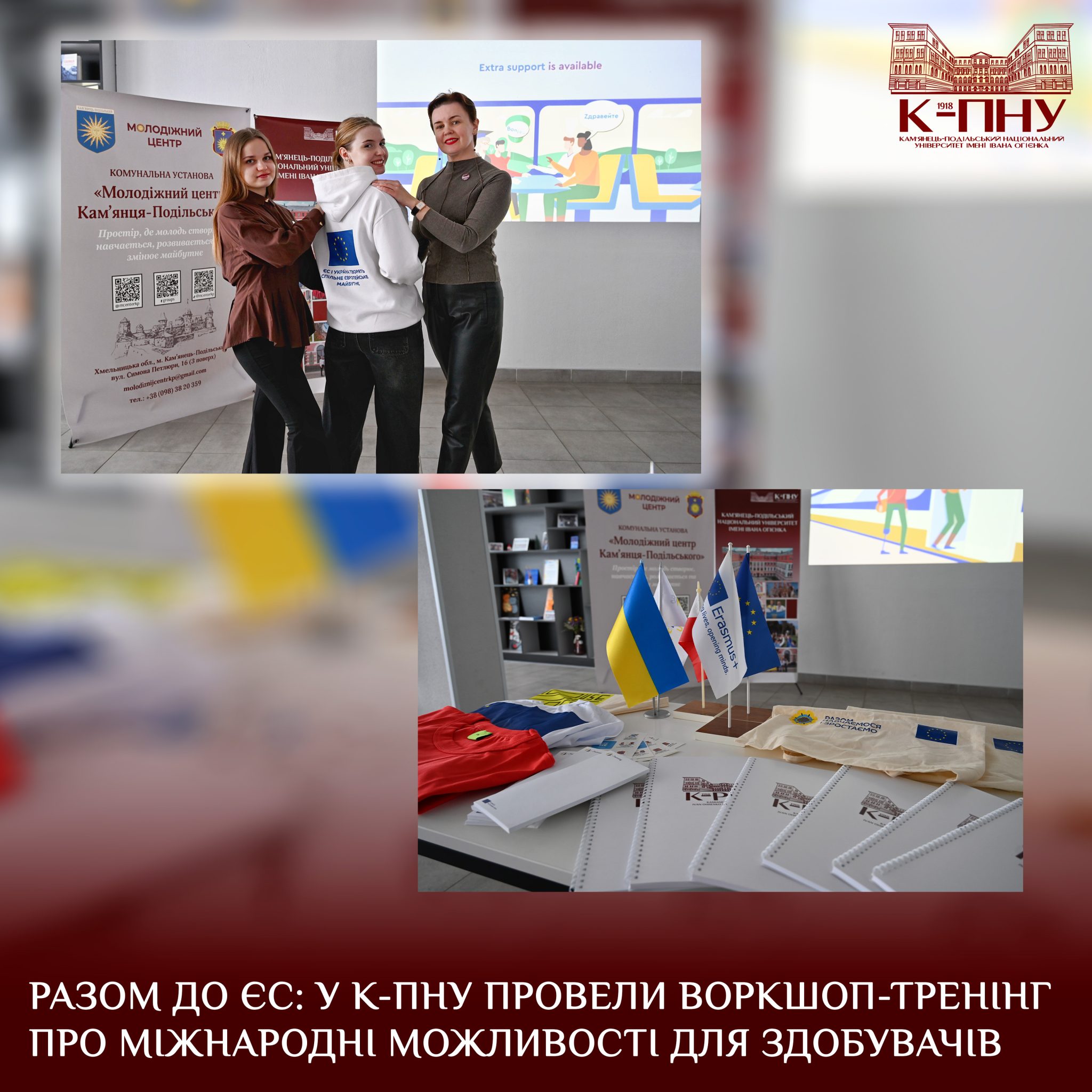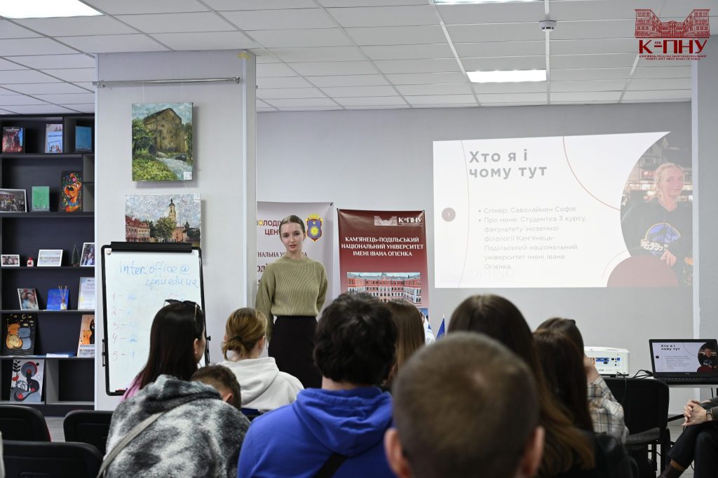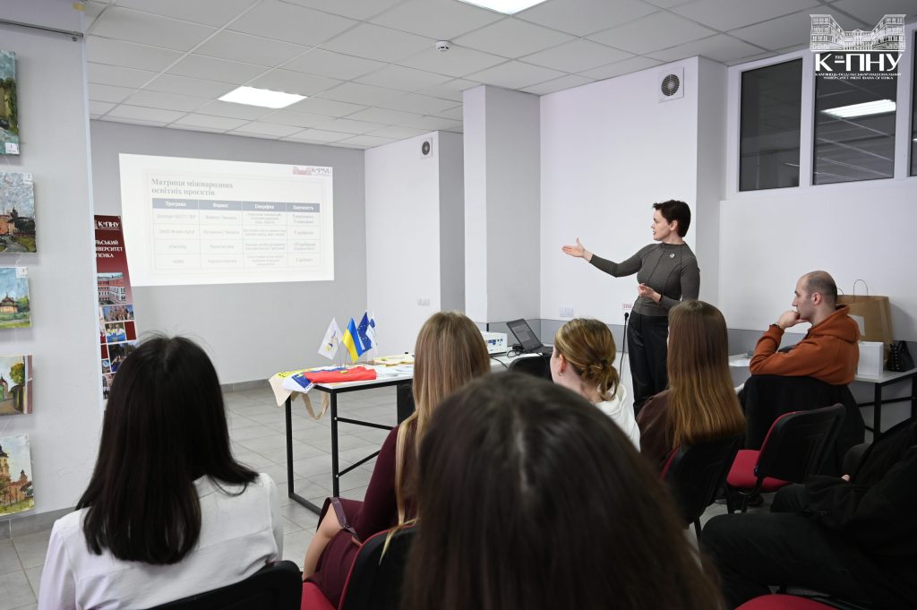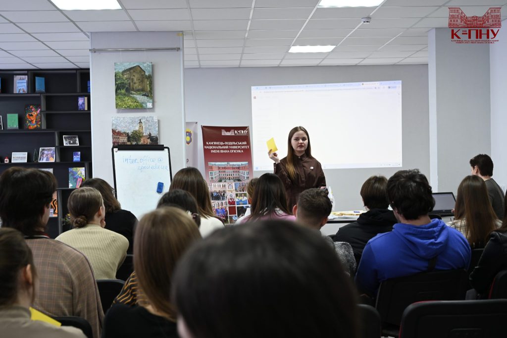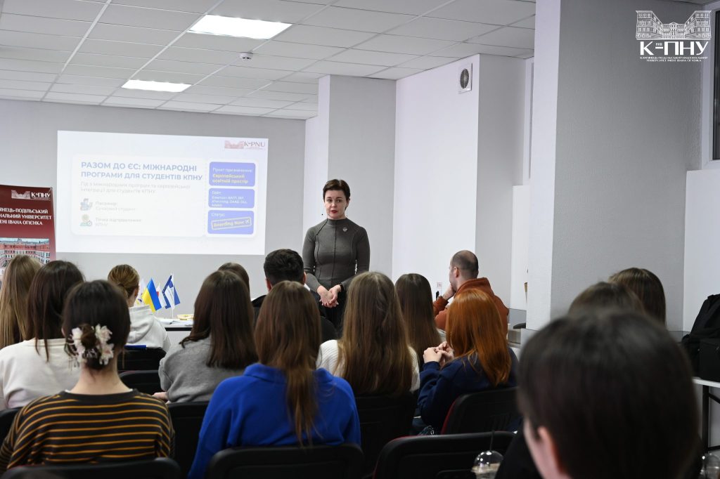 16 березня 2026 року в Молодіжному центрі Кам’янця-Подільського відбувся воркшоп-тренінг «Разом до ЄС: міжнародні програми для здобувачів К-ПНУ», організований відділом міжнародних зв’язків, за участі керівника відділу міжнародних зв’язків, доцента Тетяни Сторчової, провідного фахівця з міжнародної академічної мобільності Катерини Пентюк і провідного фахівця із загально-організаційного забезпечення Анастасії Невенгловської. Зустріч об’єднала близько 30 здобувачів різних факультетів, які дізналися більше про можливості академічної мобільності й міжнародного співробітництва Університету Огієнка.