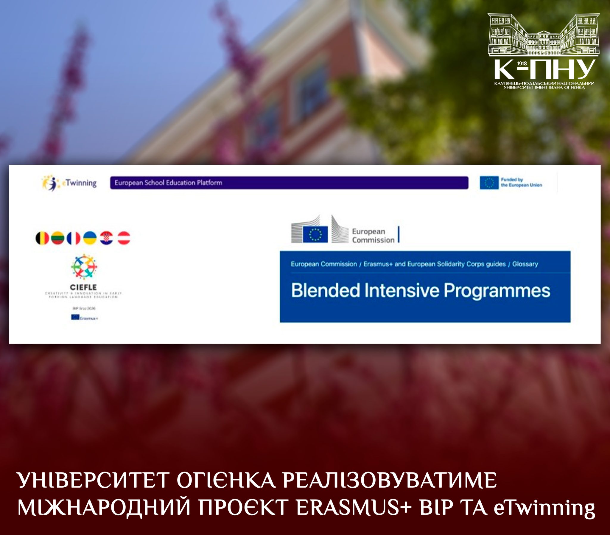 Кам’янець-Подільський національний університет імені Івана Огієнка став учасником нового міжнародного освітнього проєкту в межах програми Erasmus+ – Blended Intensive Programme (BIP) 2026, який об’єднує заклади вищої освіти з різних країн Європи.