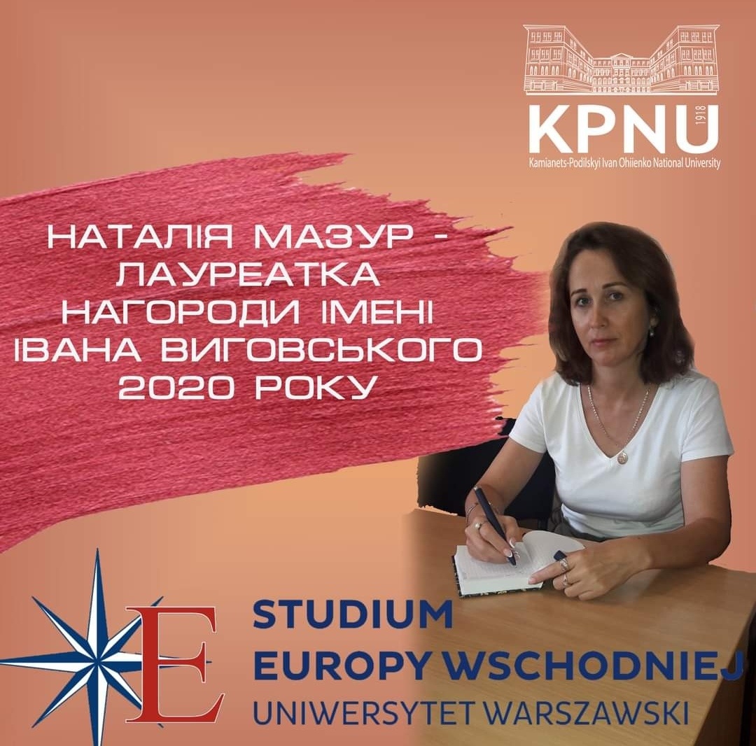 Вітаємо Наталію Мазур, докторку економічних наук, професорку, професорку кафедри економіки підприємства, яка цьогоріч стала лауреаткою нагороди імені Івана Виговського від Studium Europy Wschodnej(Варшавський університет, Республіка Польща).
