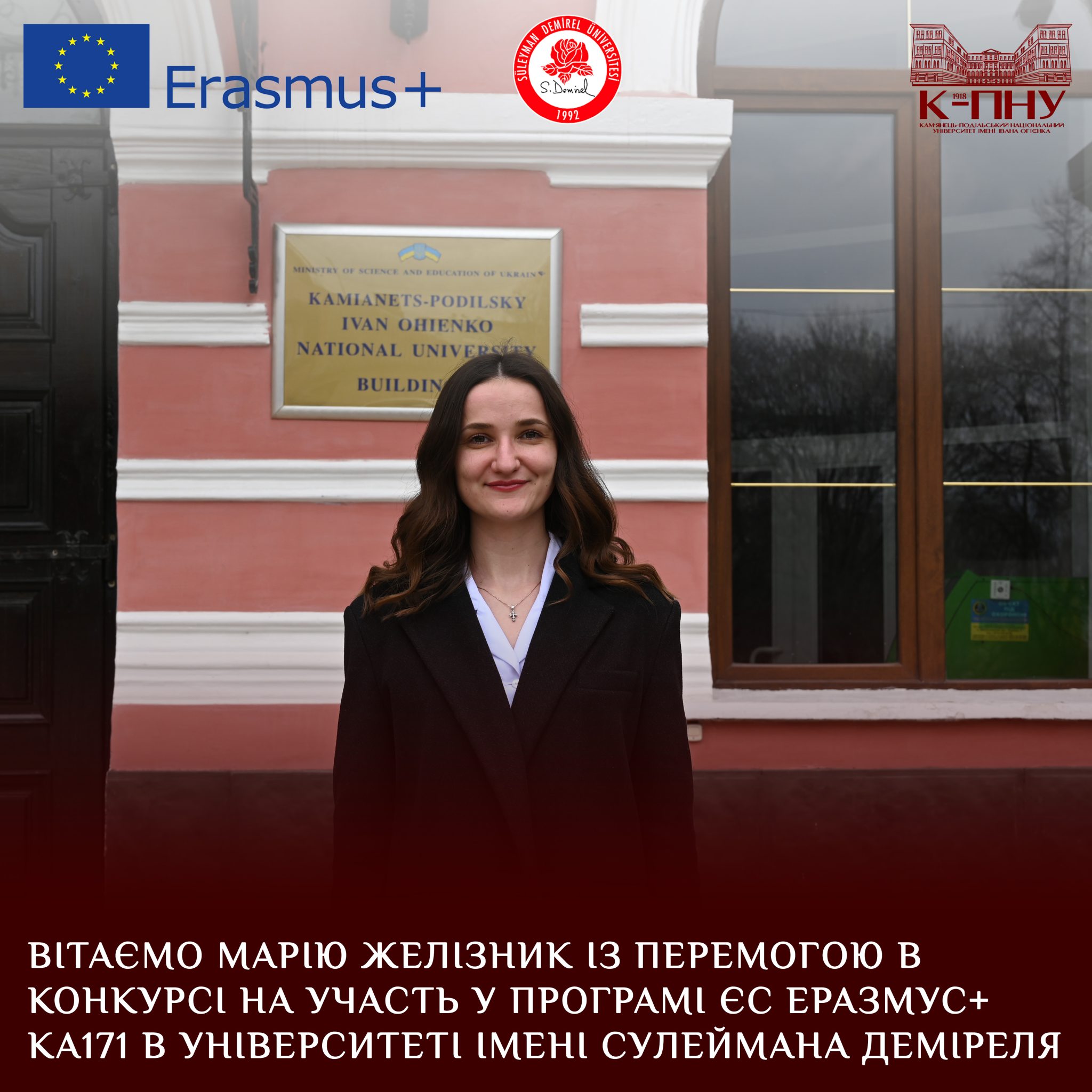 З великою приємністю повідомляємо, що Марія Желізник, здобувачка першого року навчання третього (освітньо-наукового) рівня вищої освіти спеціальності B11 Філологія Кам’янець-Подільського національного університету імені Івана Огієнка, здобула перемогу в конкурсі на участь у Програмі ЄС Еразмус+ КА171, який проводив Університет імені Сулеймана Деміреля (Іспарта, Туреччина).