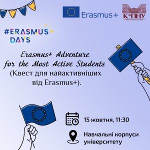 Серія заходів в Університеті Огієнка триватиме впродовж 14-18 жовтня 2024 року. Долучіться та дізнайтеся більше про можливості, які відкриває для нас програма Erasmus+. На вас чекають інтерактивні заходи, квест, круглі столи, воркшопи, вікторини і цікаві зустрічі із запрошеними спікерами й учасниками програми Erasmus+, які поділяться своїм досвідом академічної мобільності та проєктної діяльності.
