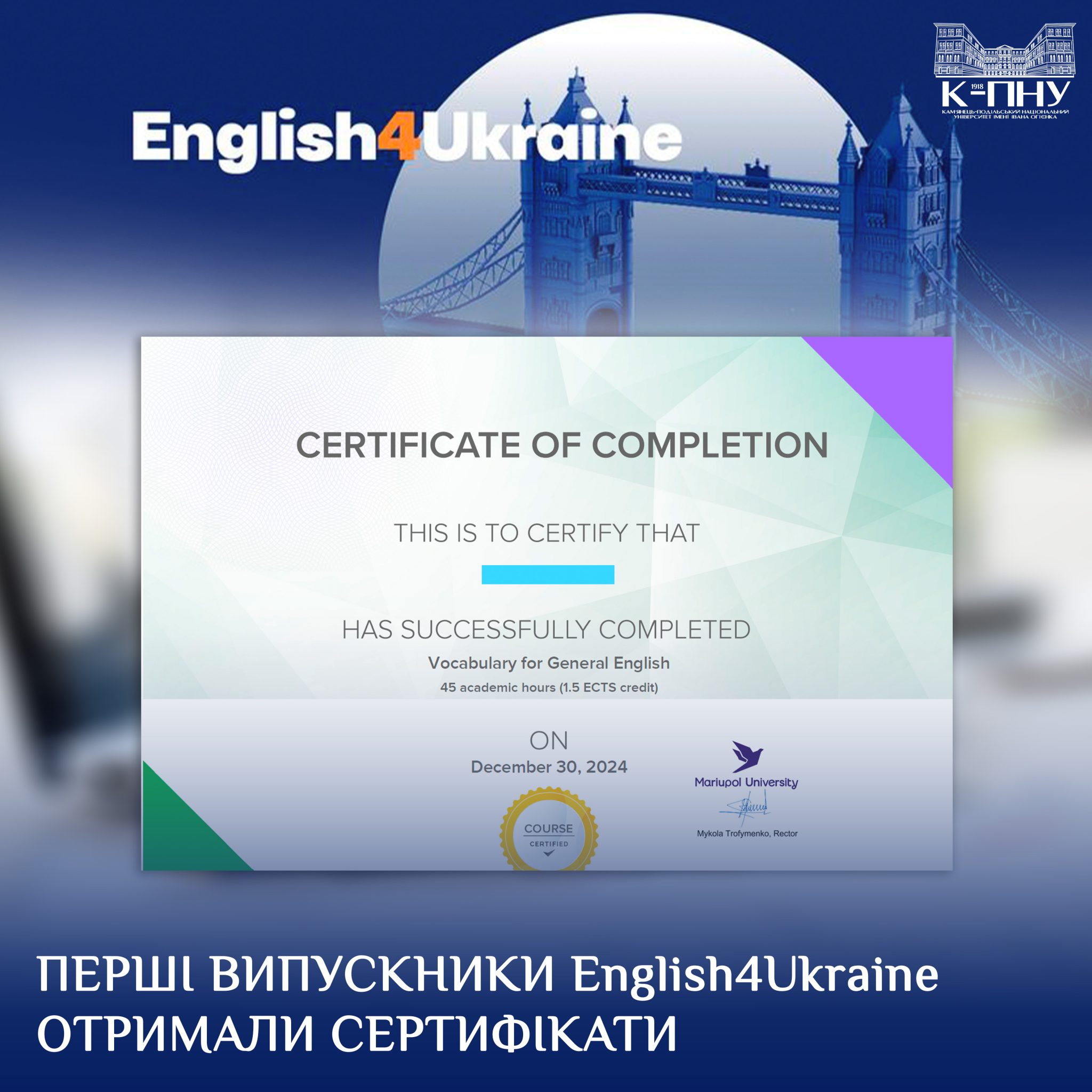 Ми раді повідомити, що 15 користувачів платформи English4Ukraine успішно завершили навчання та отримали сертифікати про проходження курсів: