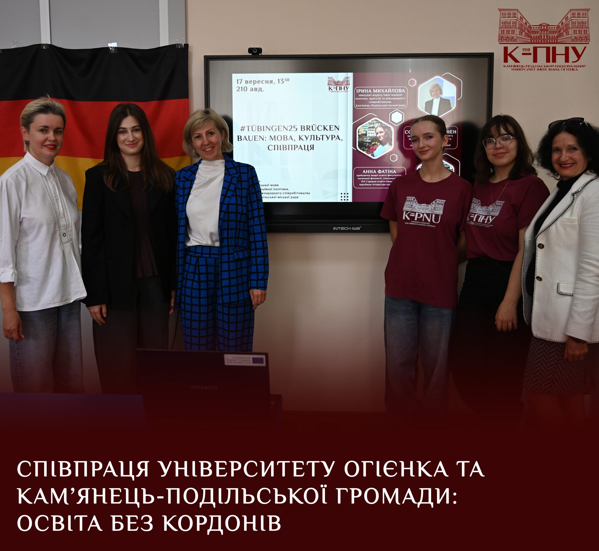 17 вересня в Кам’янець-Подільському національному університеті імені Івана Огієнка за ініціативи кафедри німецької мови відбулася зустріч “#TÜBINGEN25 BRÜCKEN BAUEN: МОВА, КУЛЬТУРА, СПІВПРАЦЯ”, яка об’єднала науково-педагогічних працівників і студентів факультету іноземної філології та представників Кам’янець-Подільської міської ради.