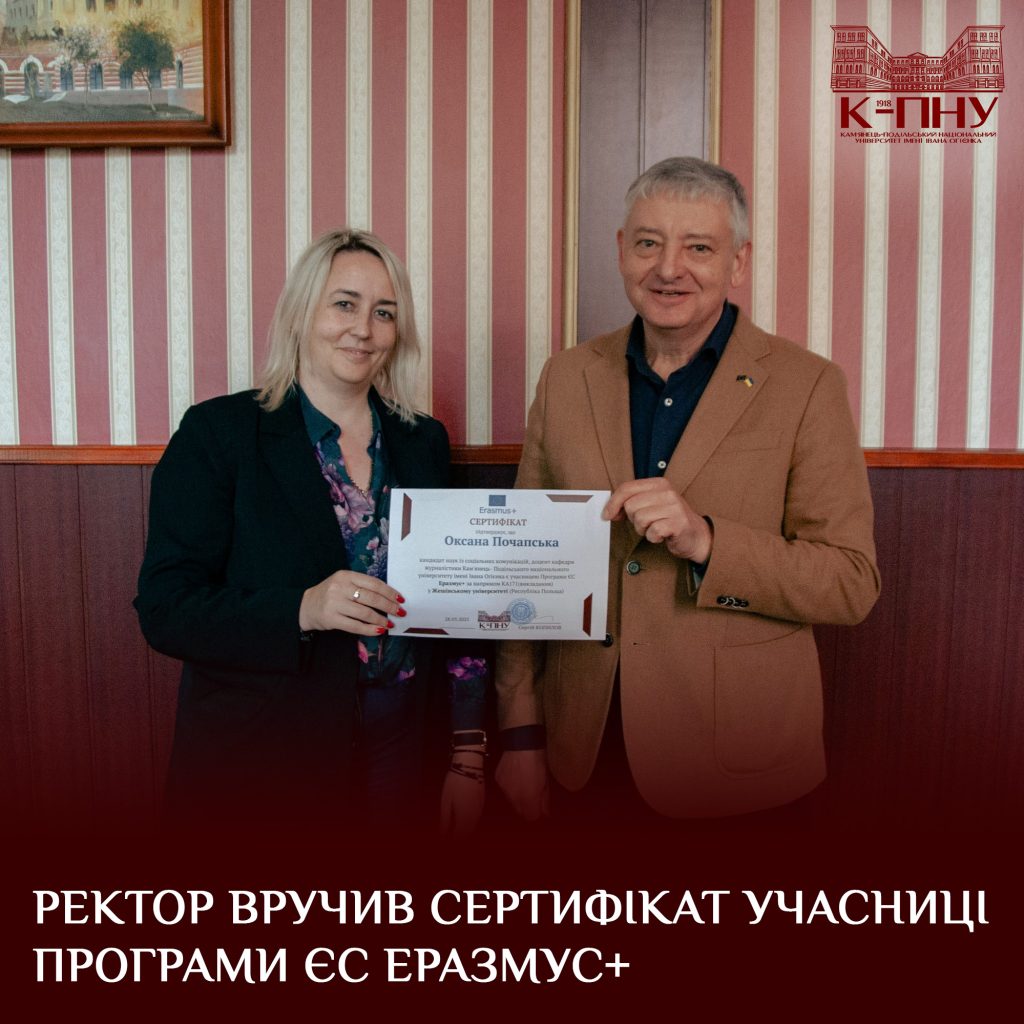 Ректор вручив сертифікат учасниці Програми ЄС Еразмус+ |