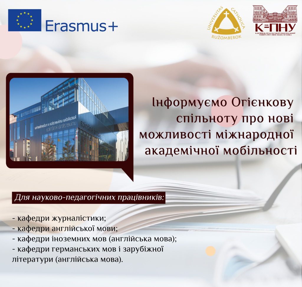Інформуємо Огієнкову спільноту про нові можливості міжнародної академічної мобільності |