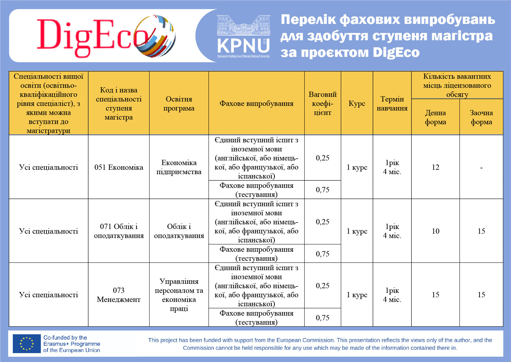 Освітньо-професійні програми другого (магістерського рівня) вищої освіти в межах проєкту
