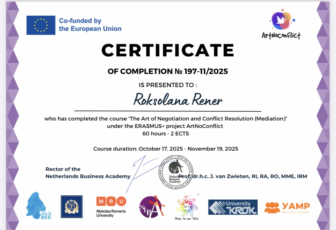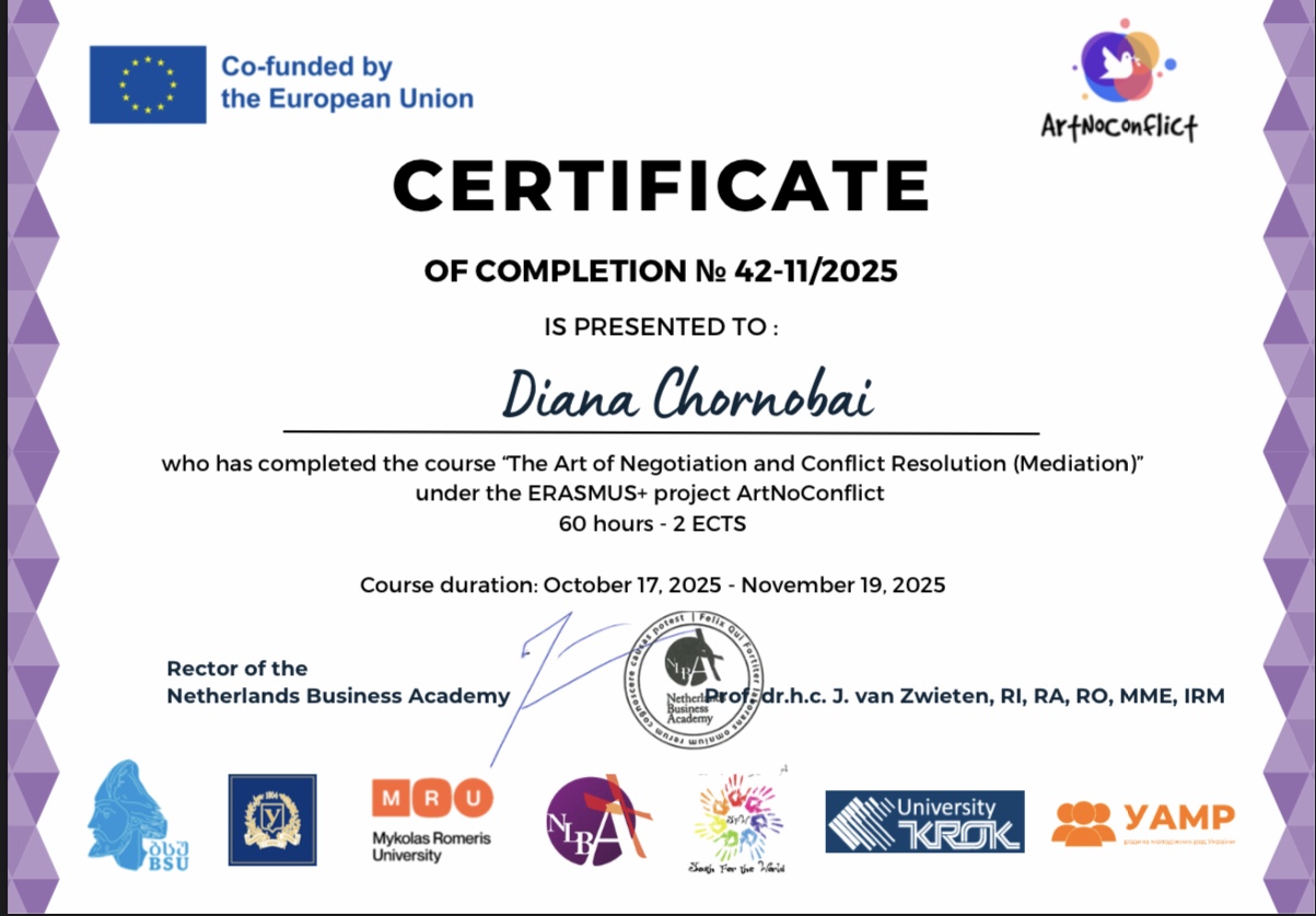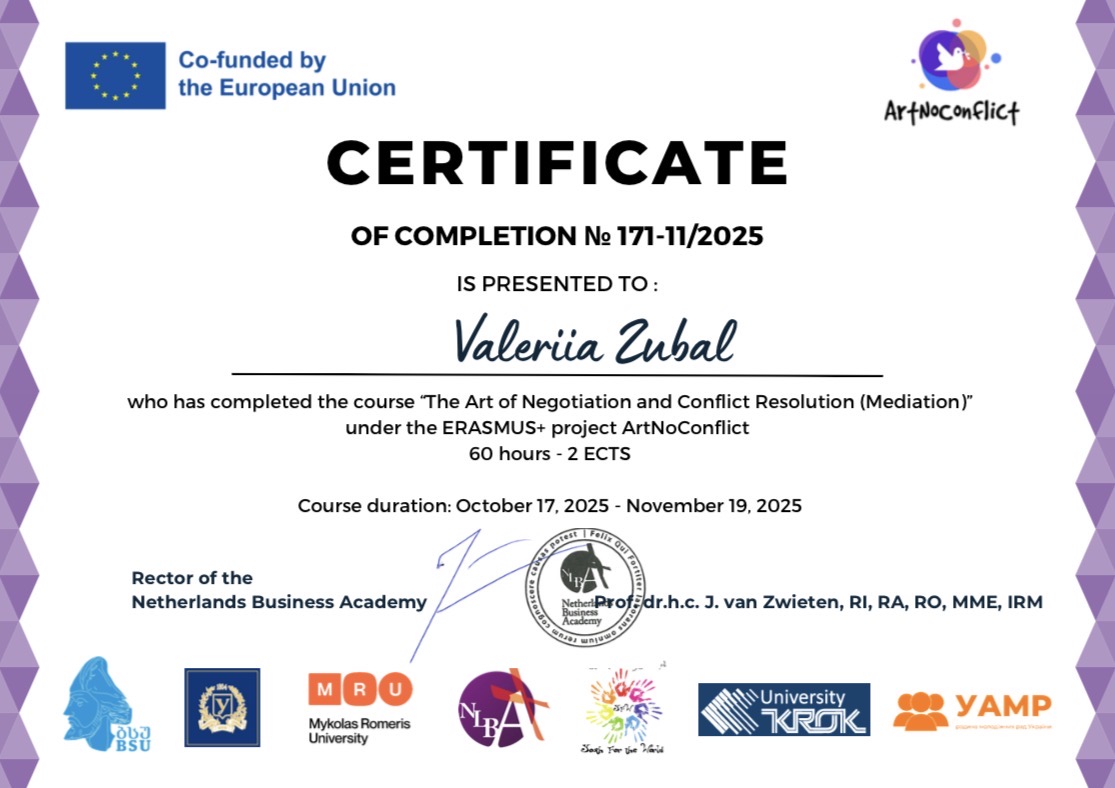 СЕРТИФІКАТ | 17 жовтня – 19 листопада 2025 року |